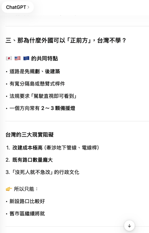 國外的紅綠燈號誌都是掛在正前方