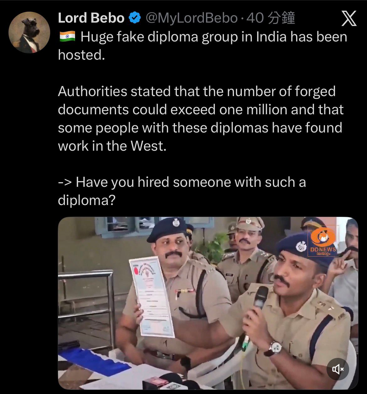 [問卦] 印度破獲假學歷文憑集團 - Gossiping 板