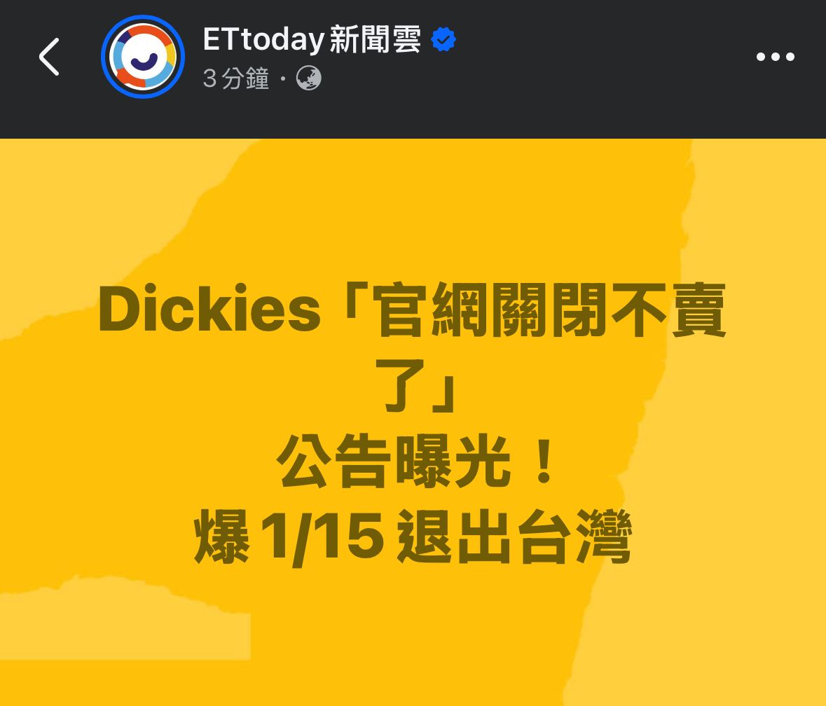 [問卦] 震驚!Dickies 1/15全面退出台灣