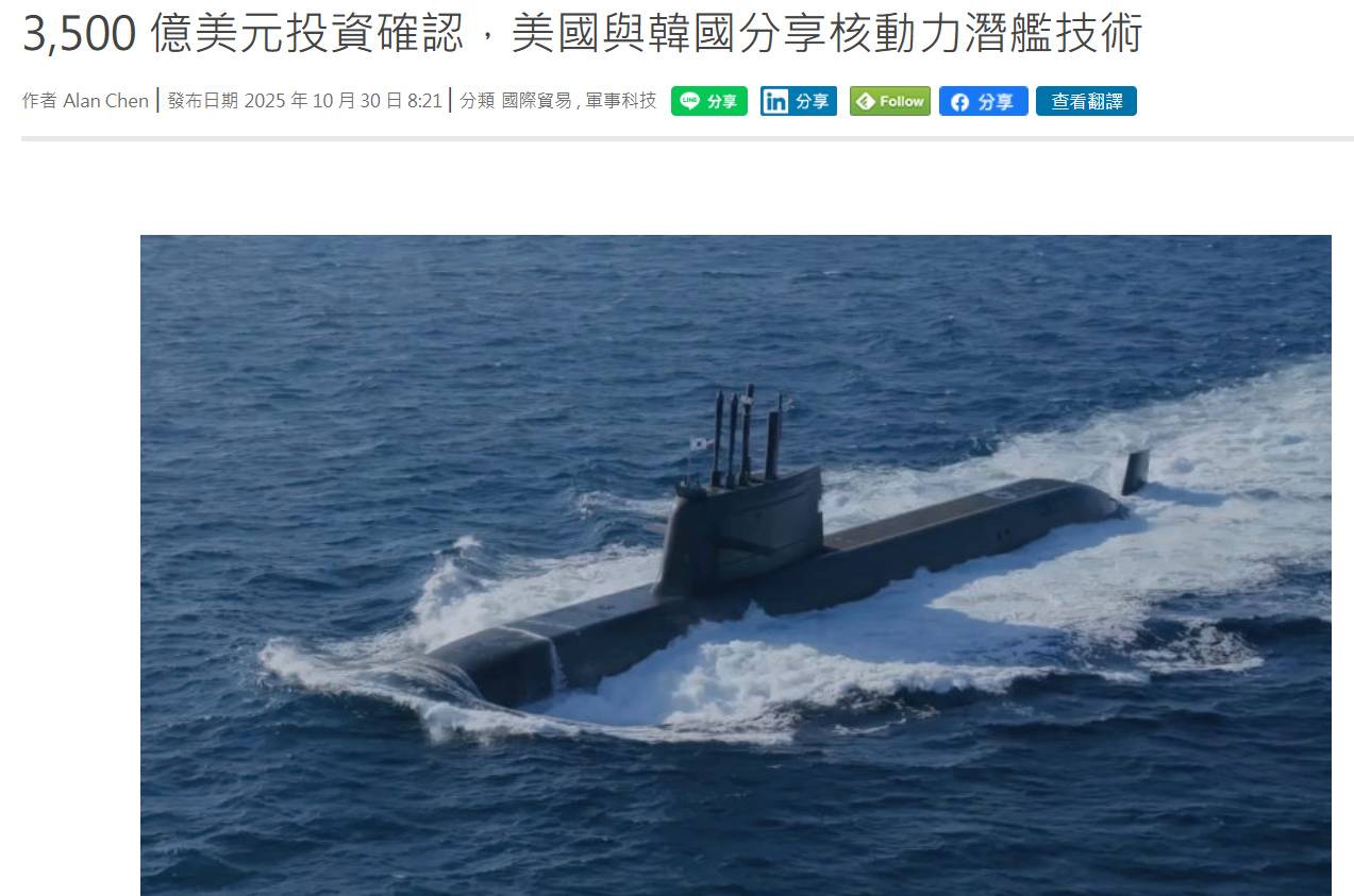 韓國總統李在明於川普抵達首爾接待時,就像其提及核動力潛艦技術分享議題,而在雙方
