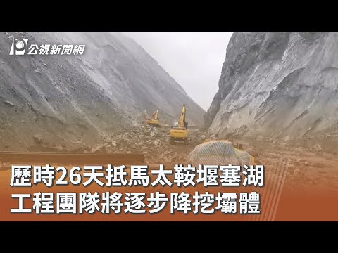 歷時26天抵馬太鞍堰塞湖 工程團隊將逐步降挖壩體