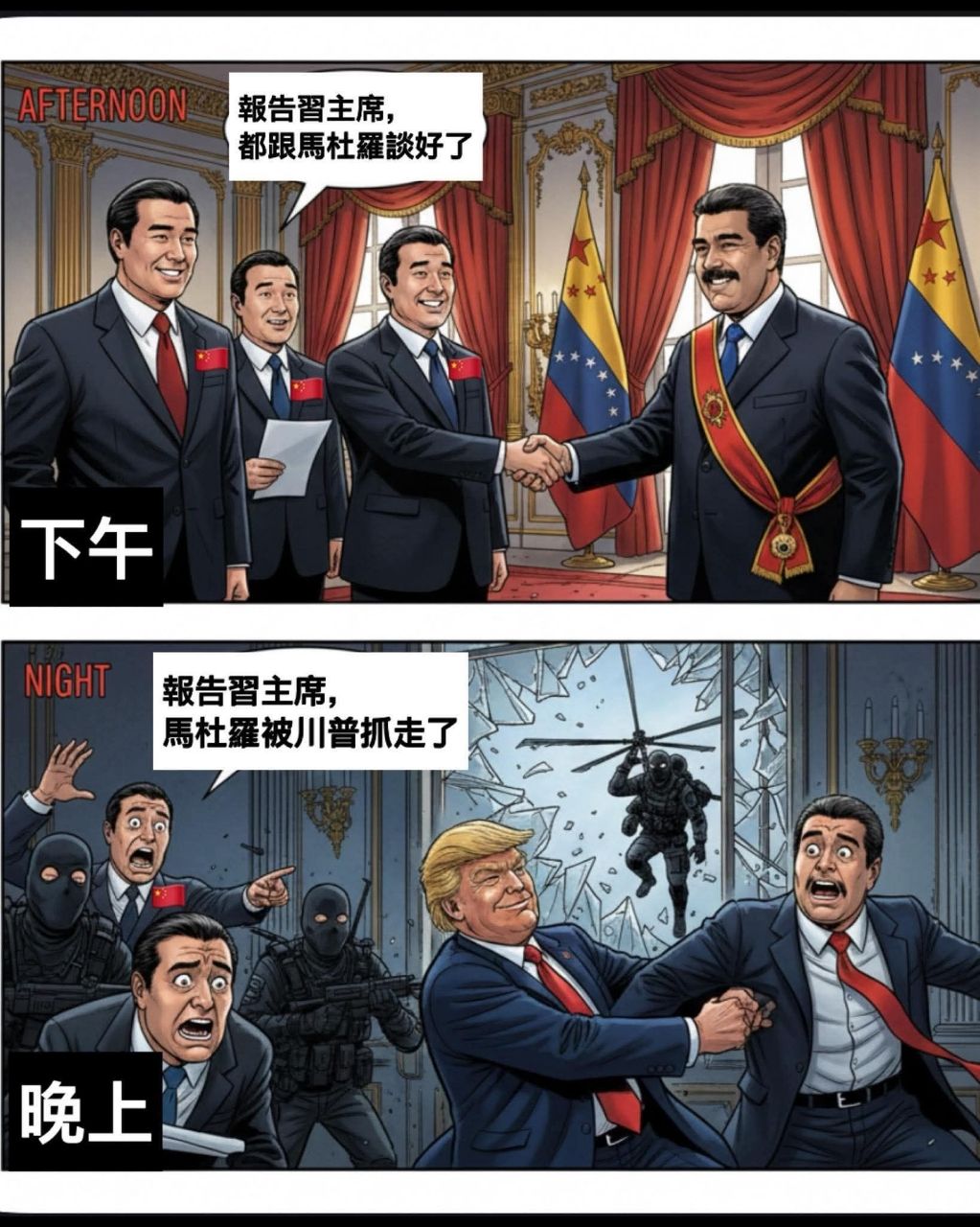 只是跟中國交談總統就被美國抓走 那就知