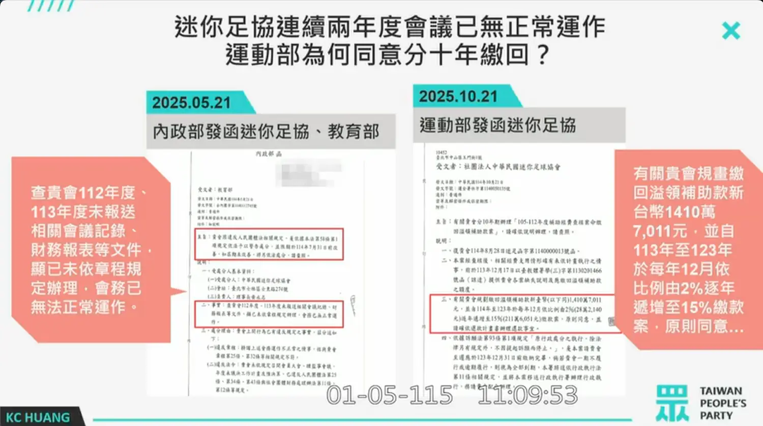 黃國昌: 當然不是奇怪啦,那迷你足協為什麼可以,憑什麼它可以,如果這不是運動部的