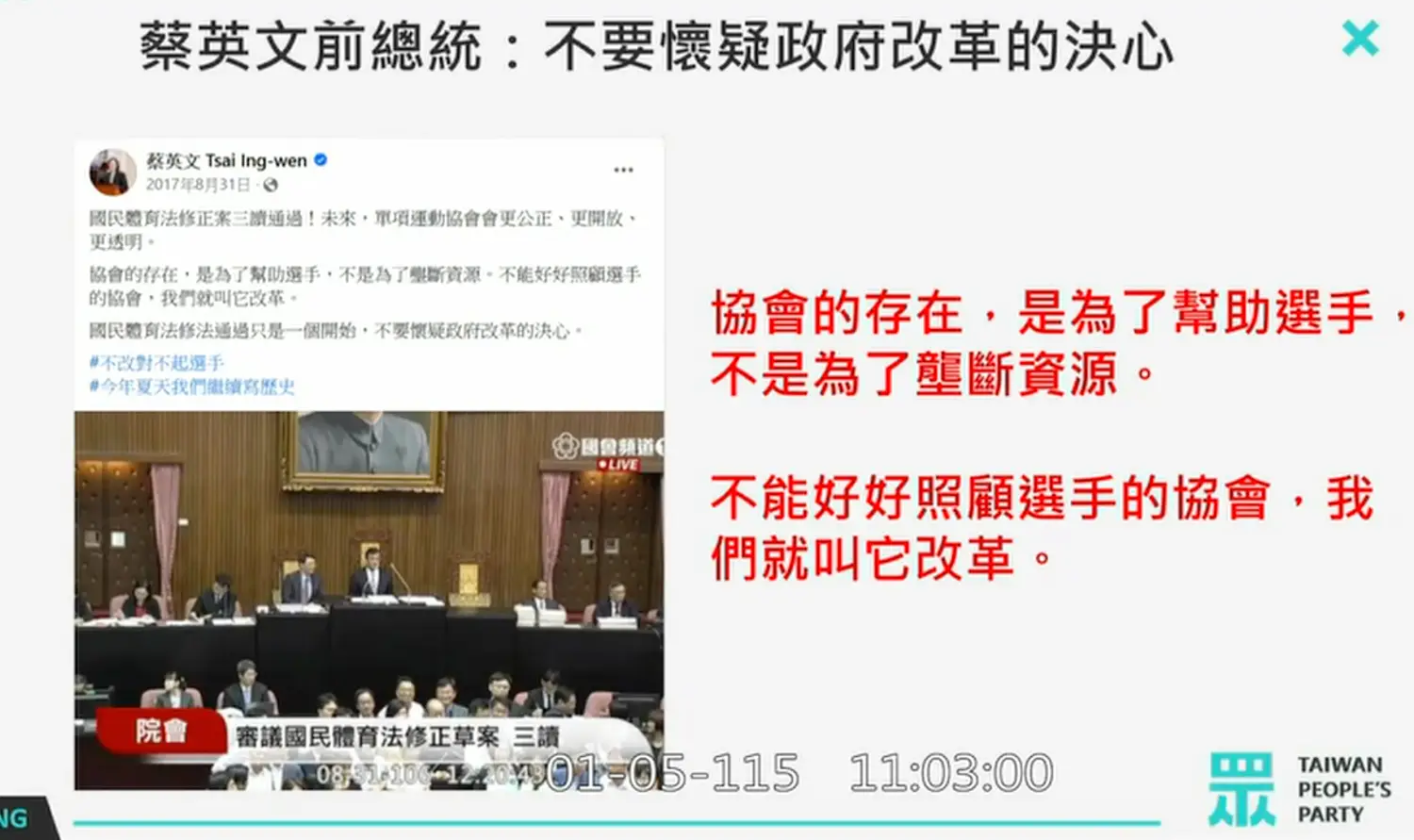 這是當初2017年的時候,在推動體育改革提出來的願景,我離開立法院4年以後,我非常