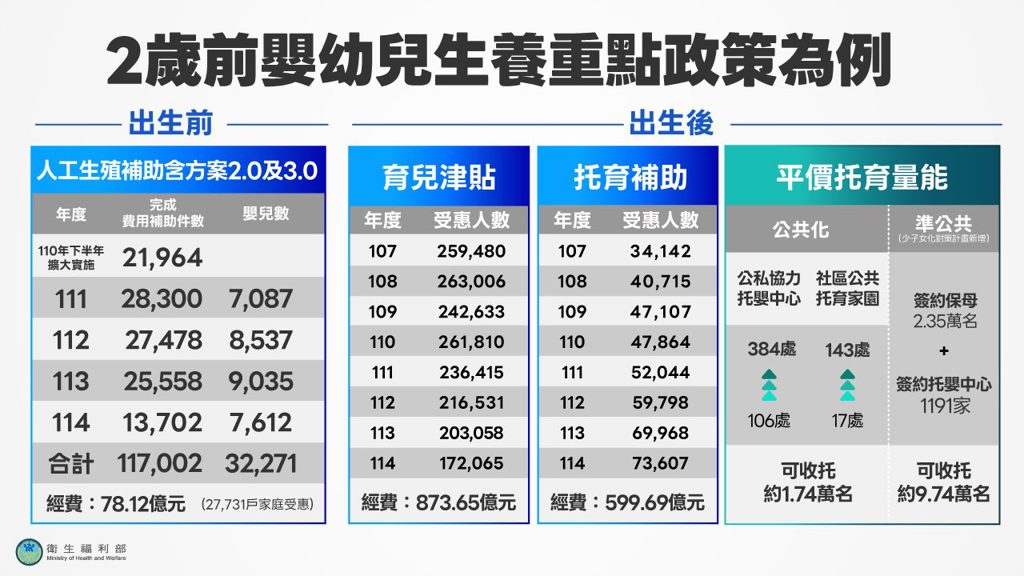 衛福部說明2歲前嬰幼兒生養重點政策。(衛生福利部)