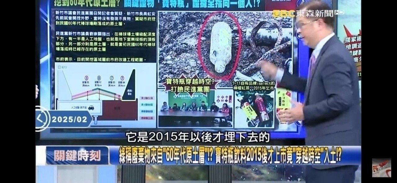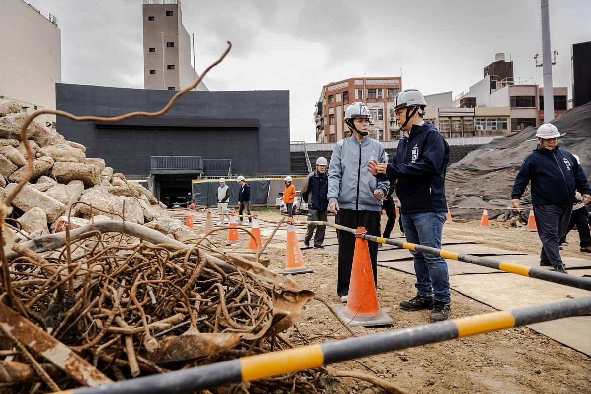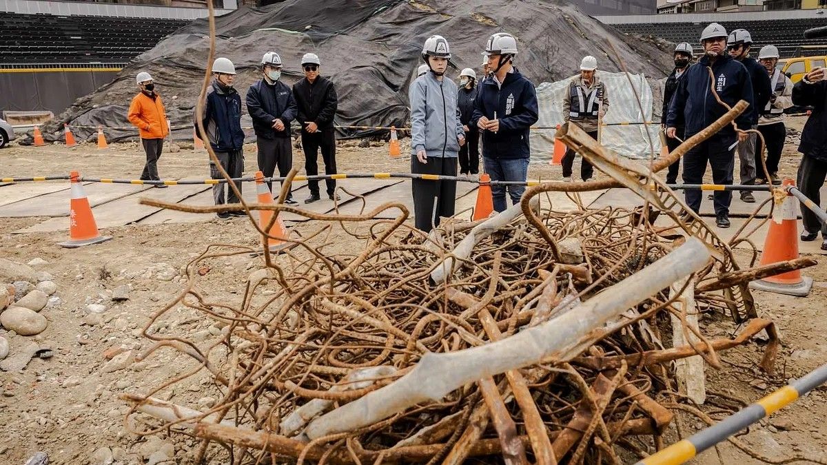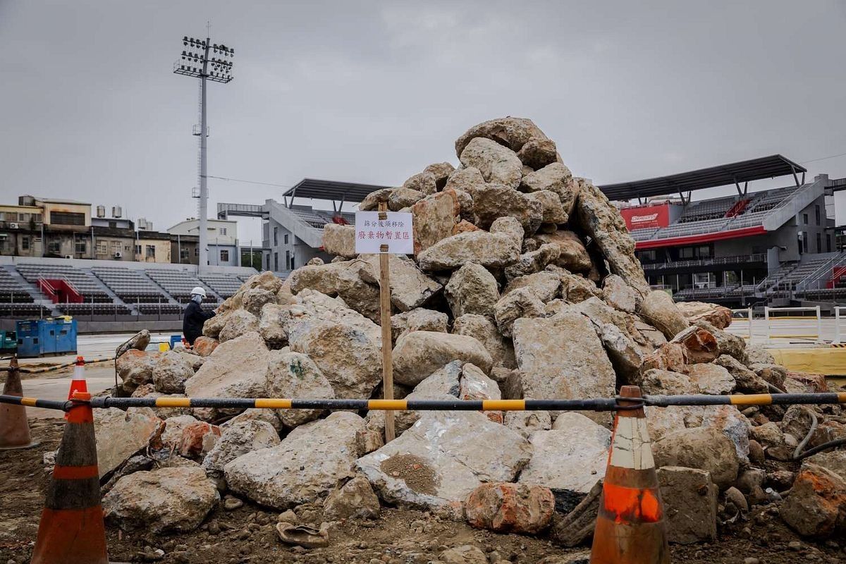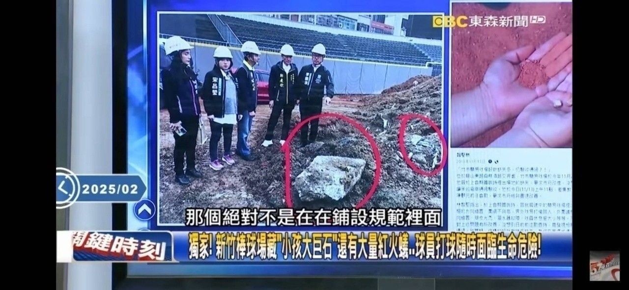 新竹市長高虹安視察新竹棒球場改善工程,回填層中混雜的混凝土塊、紅磚塊、鋼筋及其