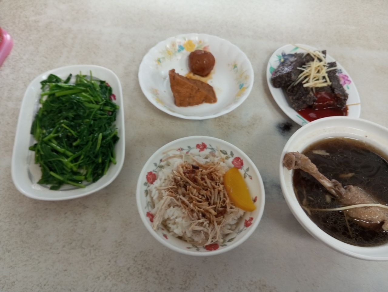 : 雞肉飯 60 鴨湯 100 空心菜 40 油豆腐