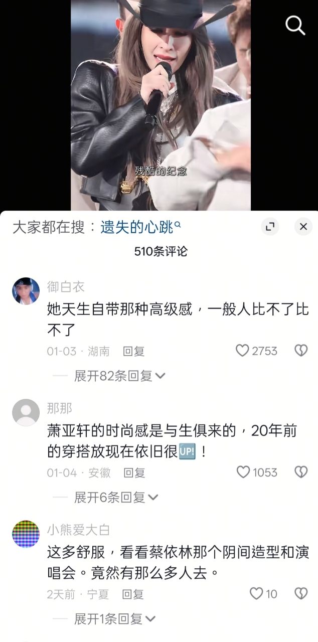 蕭亞軒這次在中國跨年復出,收視率是全部藝人第一名,而且很多人說她的舞台評價高過
