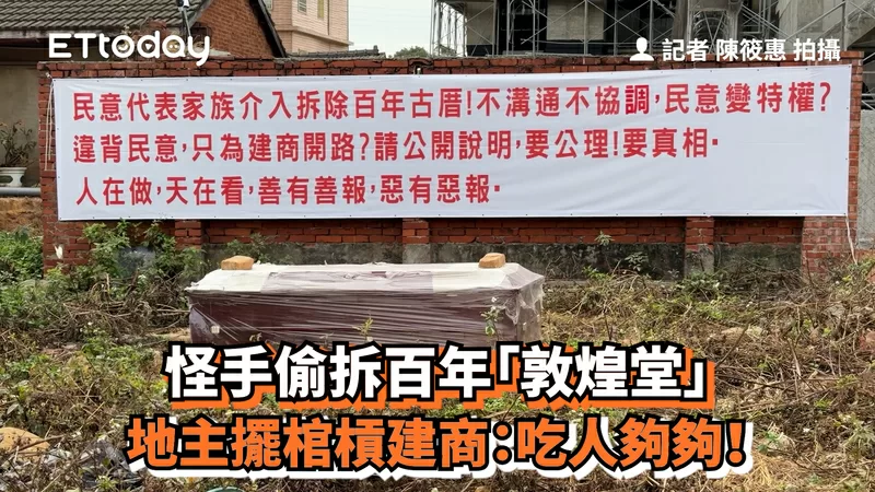 怪手偷拆百年「敦煌堂」 地主擺棺槓建商:吃人夠夠!