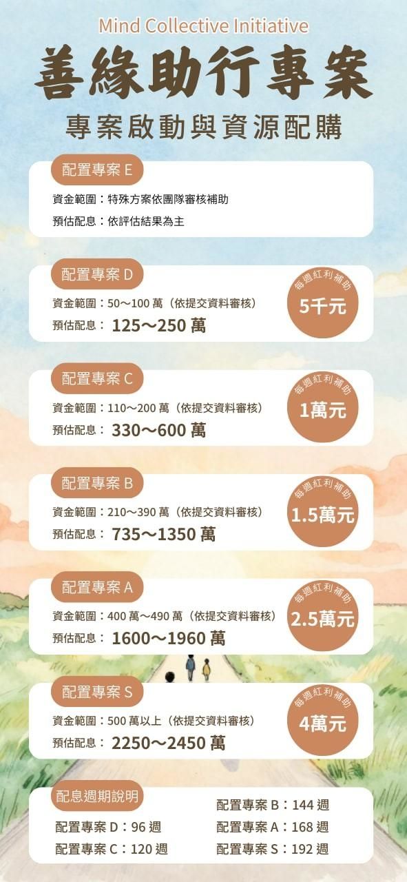 現在群組內有位執行長推出一個行善助行專案,可不必先掏錢,由執行長代墊款項出資投