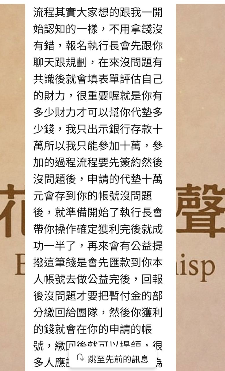 資,有獲利後,執行長會先匯一些款項給你讓你做公益?你再將墊付款項還給對方後,就