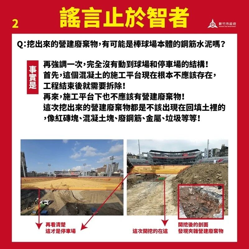 針對近期網路上關於新竹棒球場開挖與改善工程討論,包括挖到棒球場或地下停車場混凝