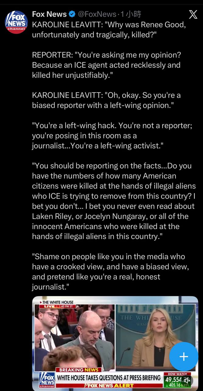 記者:妳問我意見?好吧,我覺得是ICE特工魯莽行事造成悲劇。