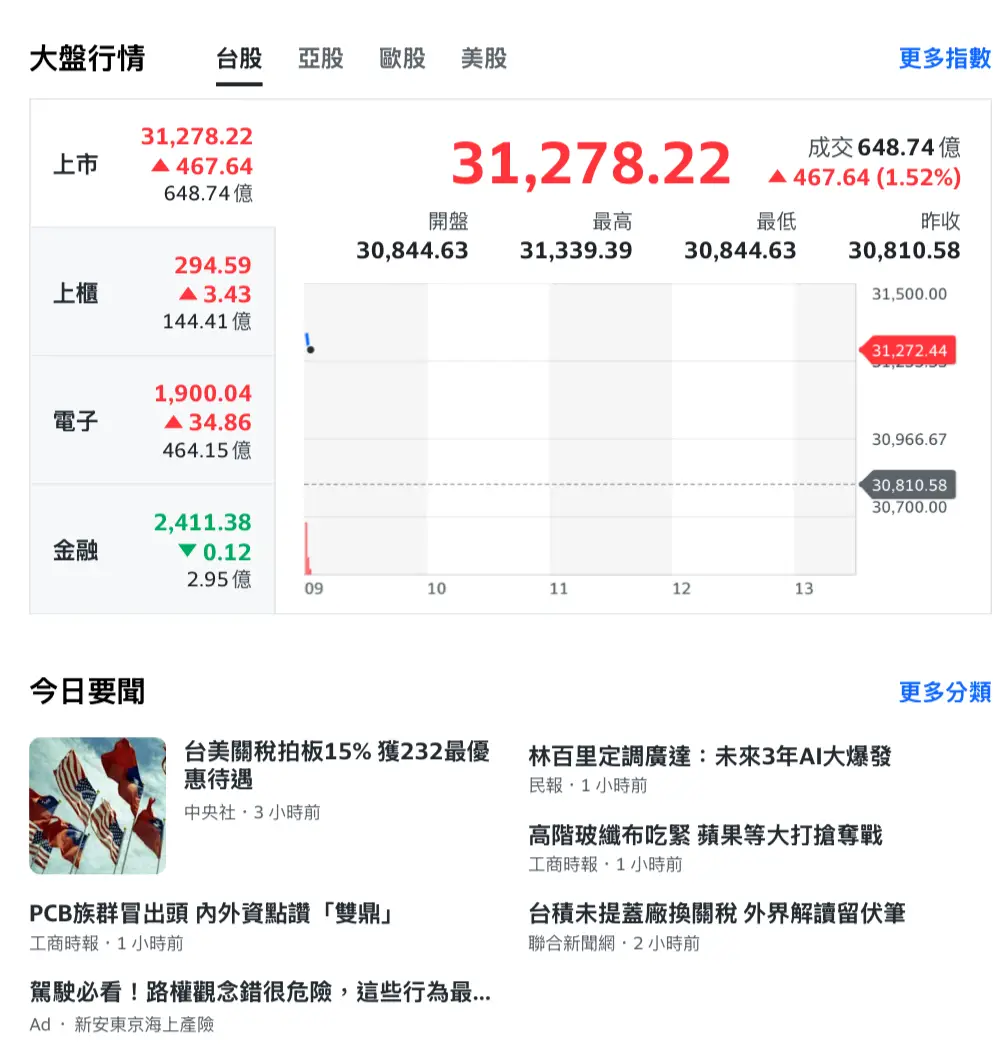 大盤直接飛越31k