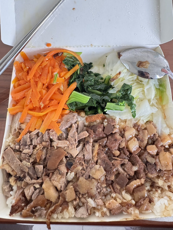 以前的同學在嘉義工作,貼了鴨滷飯便當 65 元 如下圖