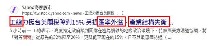 工總肯定政府成功談判,使台灣出口關稅與日、韓等主要競爭對手齊平,有效緩解企業在美國