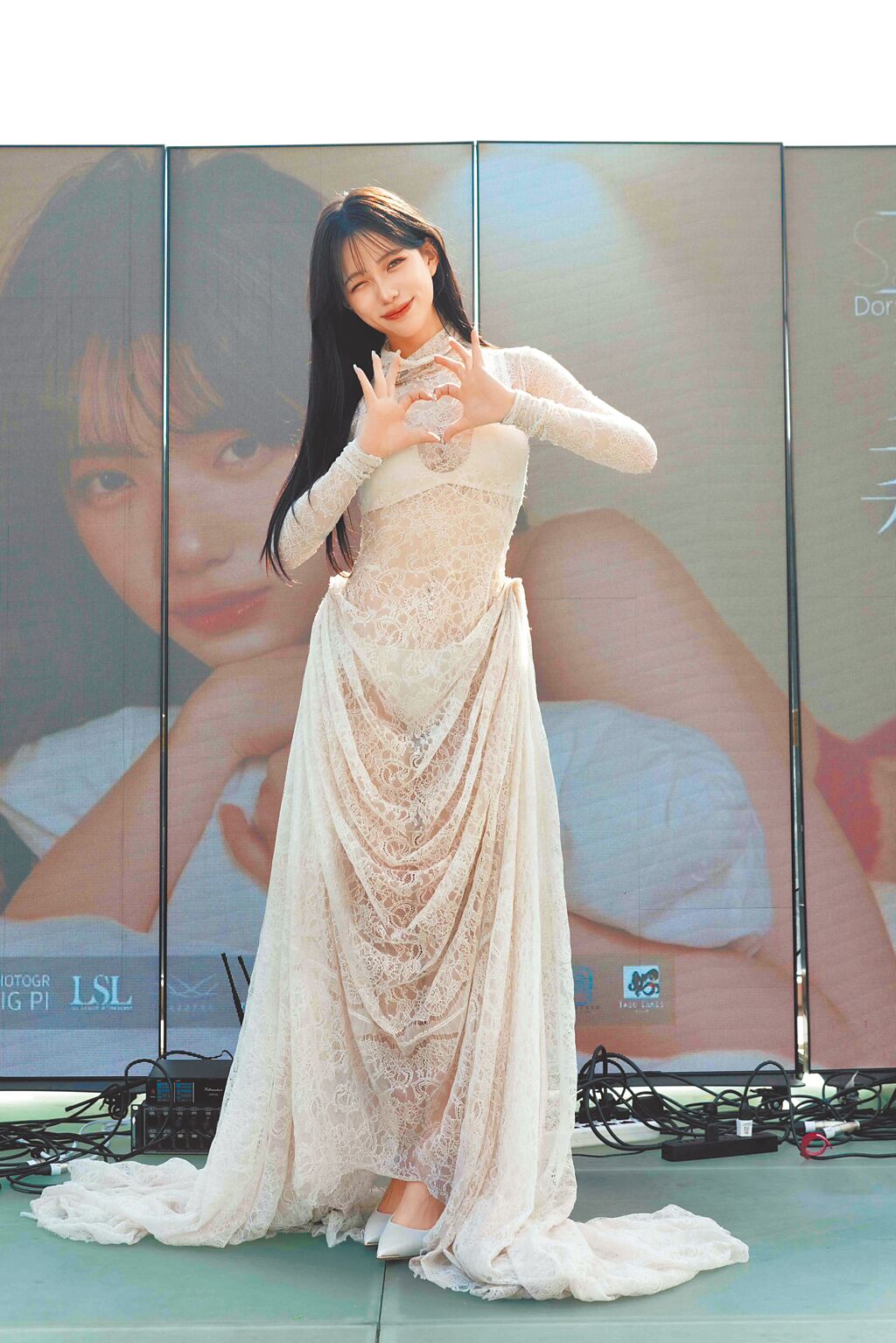 三多莉》,17日辦簽書會,吸引多位粉絲到場支持。她昨穿透膚蕾絲訂製長裙,讓豐滿上