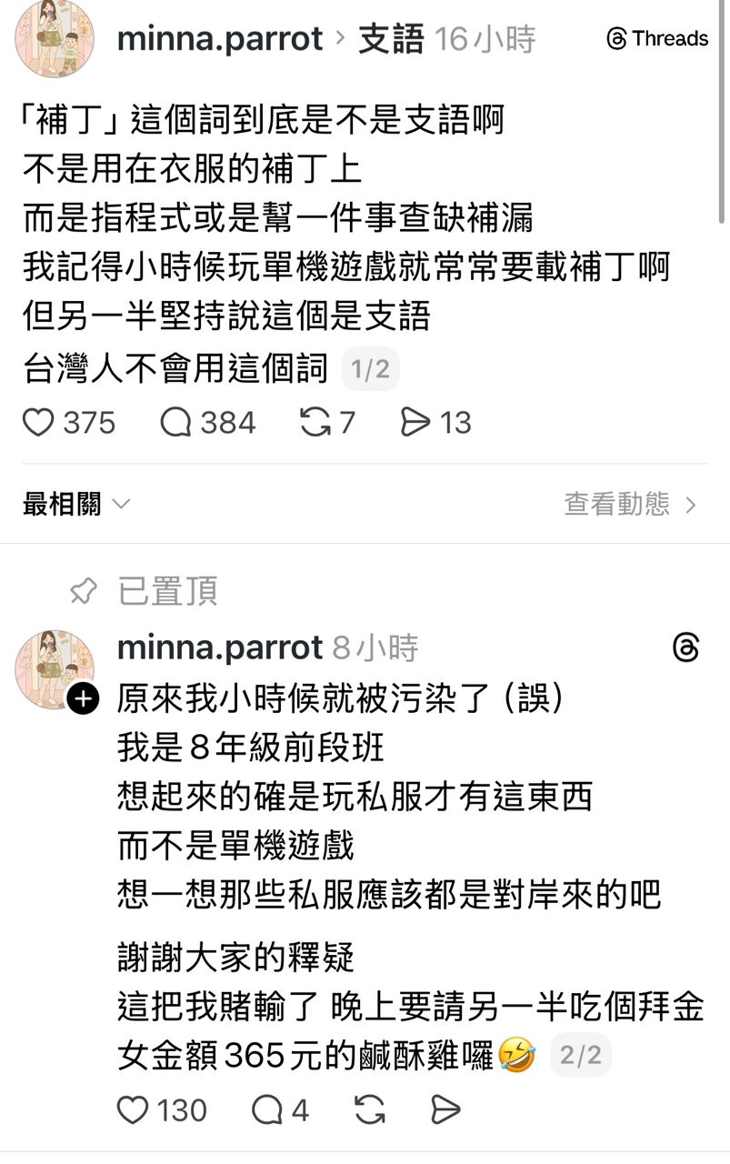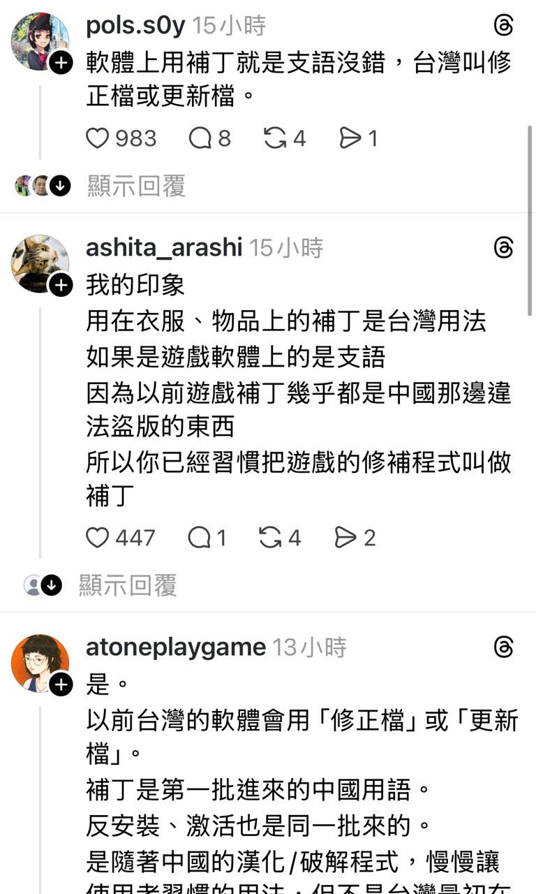 欸 補丁這個詞彙算不算支語啊?