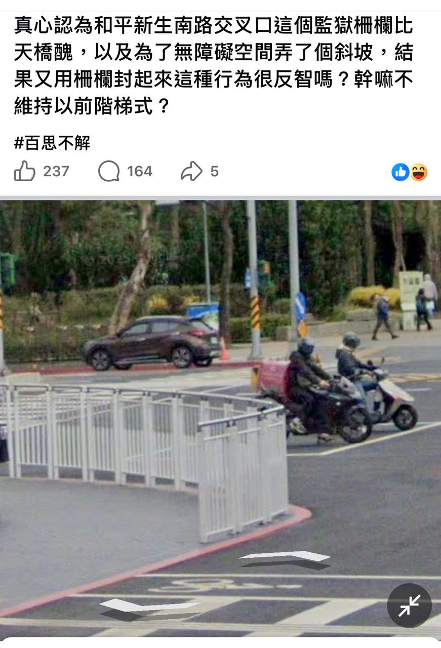 最近經過和平東路跟新生南路交叉口,變得很不一樣,有柵欄、行人穿越道後移明顯有感
