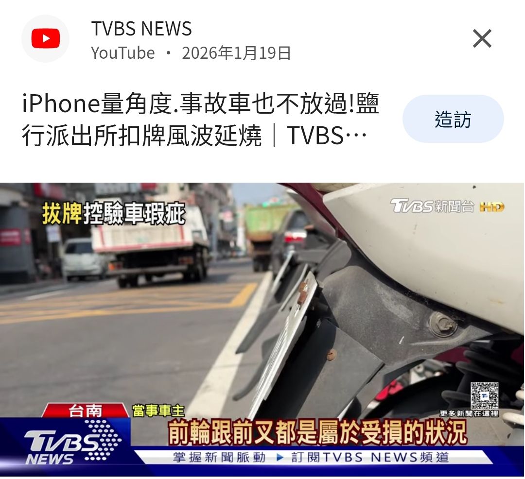 作者 tatty5566 ( )標題 [新聞] 鹽行派出所拔車牌惹議! 事故車遭扣 時間 Wed Jan 21 00:21:17 2026