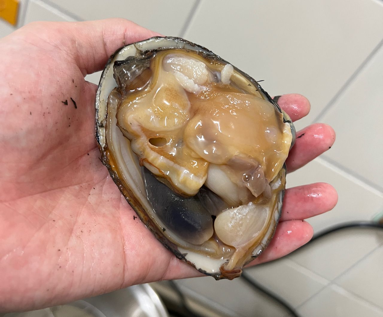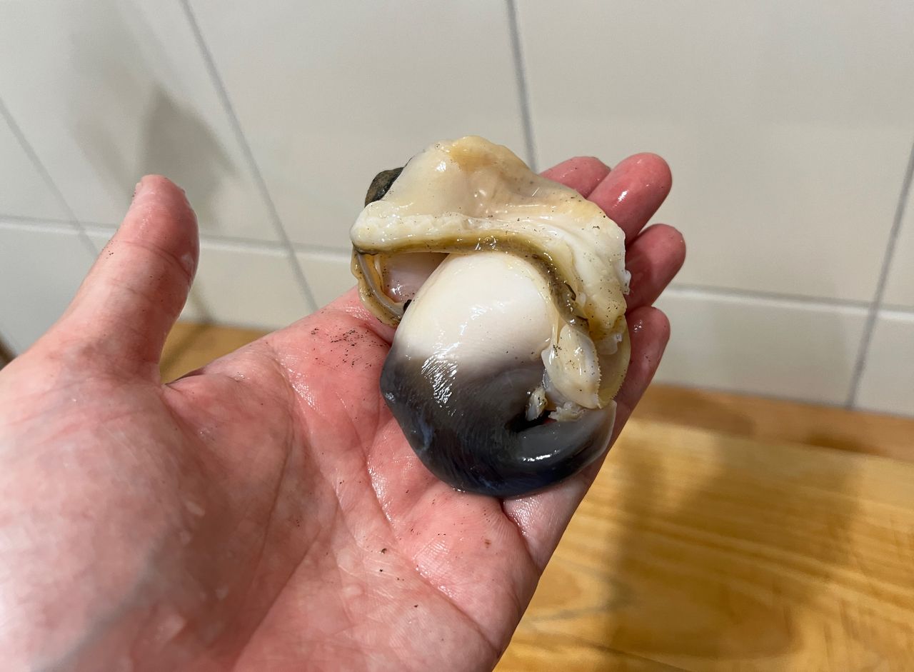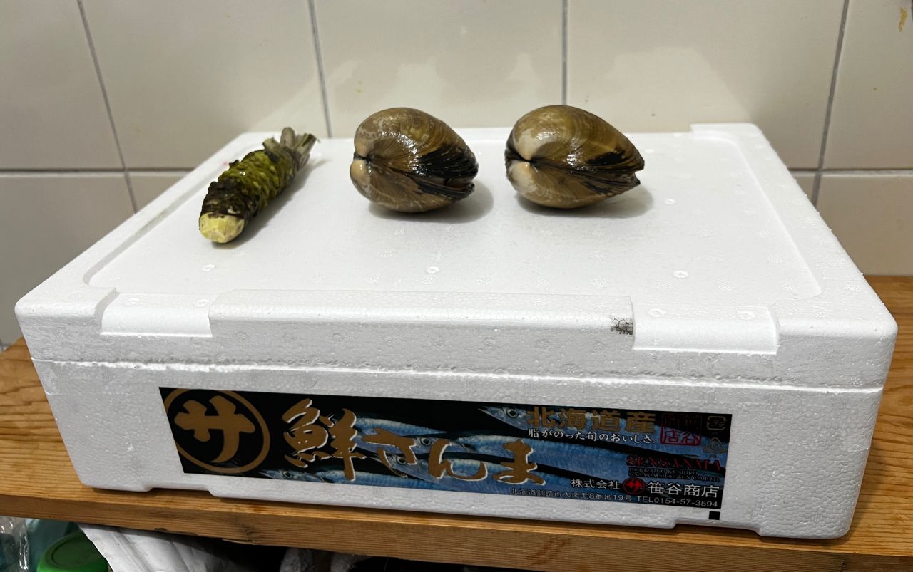 除了魚類以外還買了活體的北海道北寄貝,貝肉吃起來又脆又鮮甜非常好吃