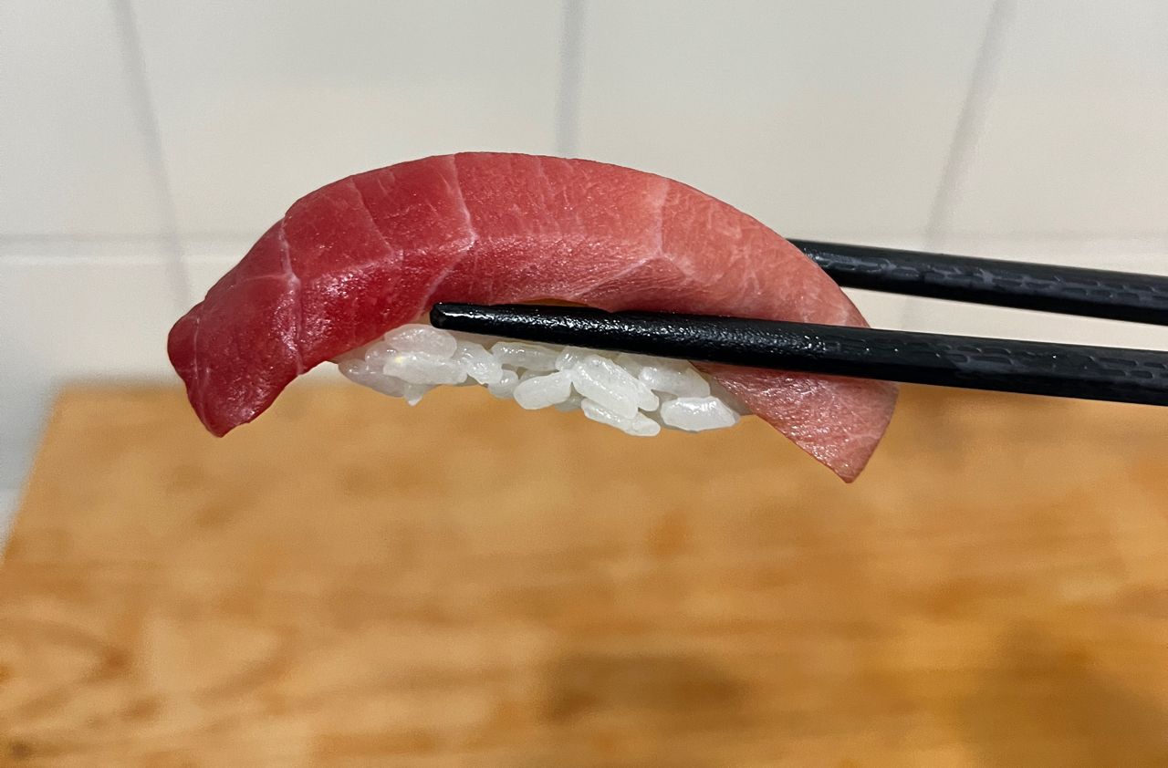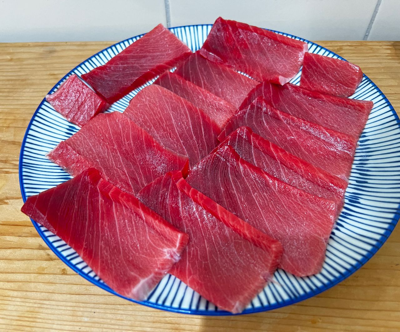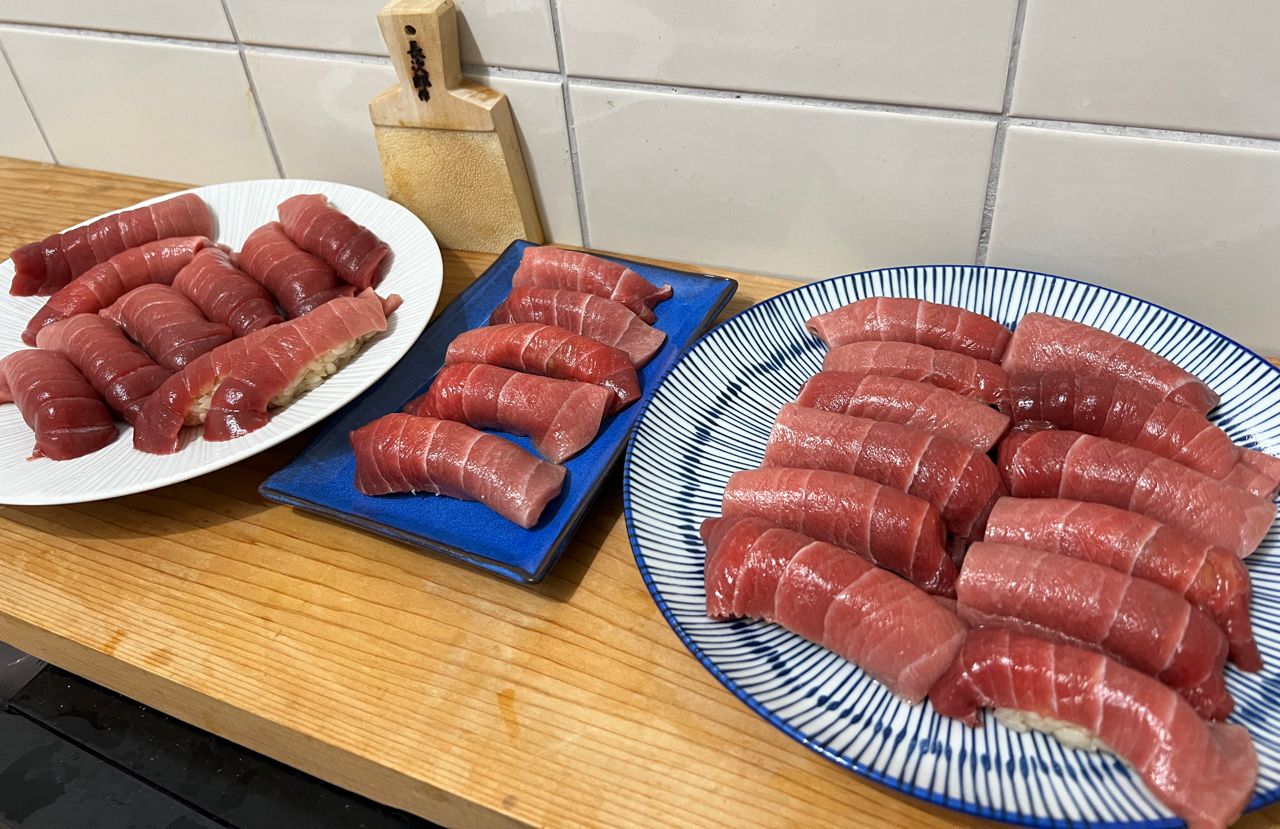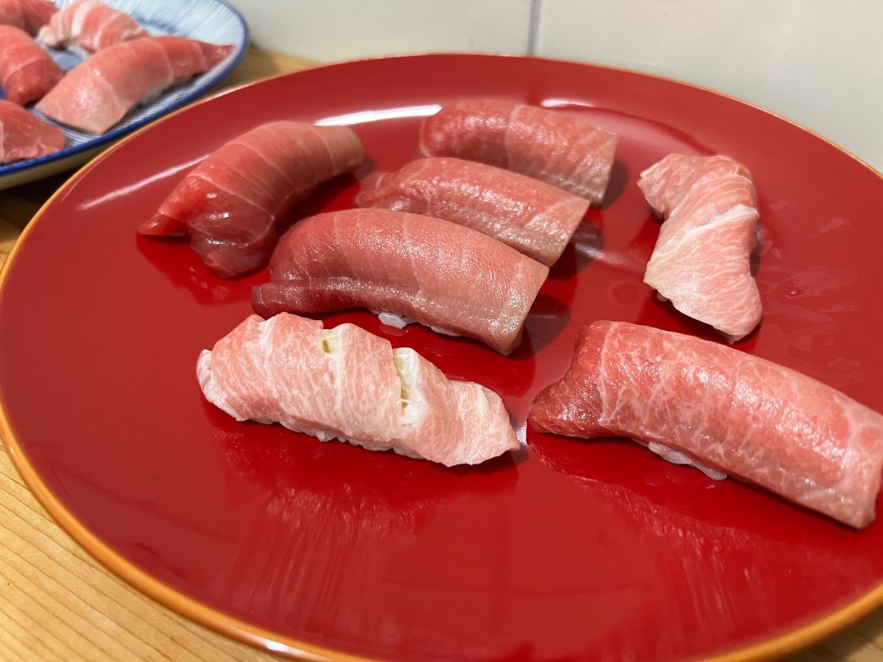 店買分切好的黑鮪魚切片成握壽司用的一片大小算是很方便的入門法了。
