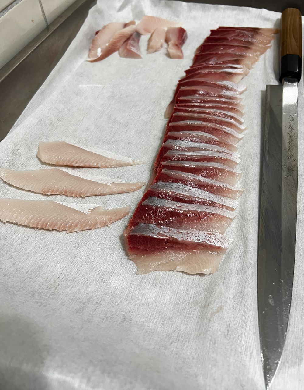 黑鮪魚季後開始用不同的魚,這次跟專門供應日料店魚貨的貿易商訂了日本有白肉魚之王