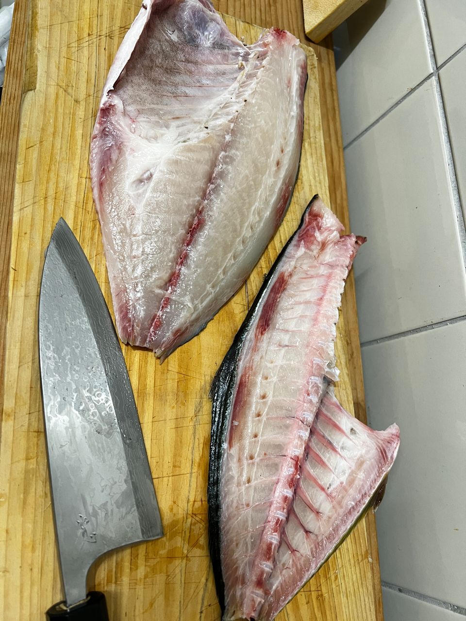 握壽司的話一定是要有日本鰤魚所以買了這種半隻處理好的清肉包裝回家方便多!一片約