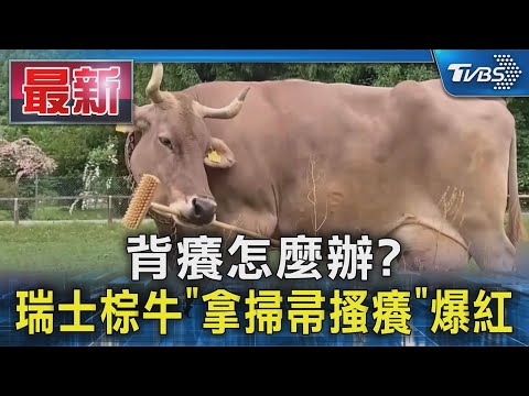 背癢怎麼辦?瑞士棕牛「拿掃帚搔癢」爆紅