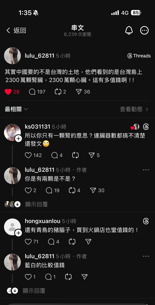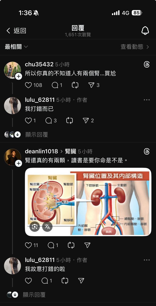 脆女發文被網友指正算術有問題,結果不知道人有兩顆腎。之後還嘴硬自己是故意的,真