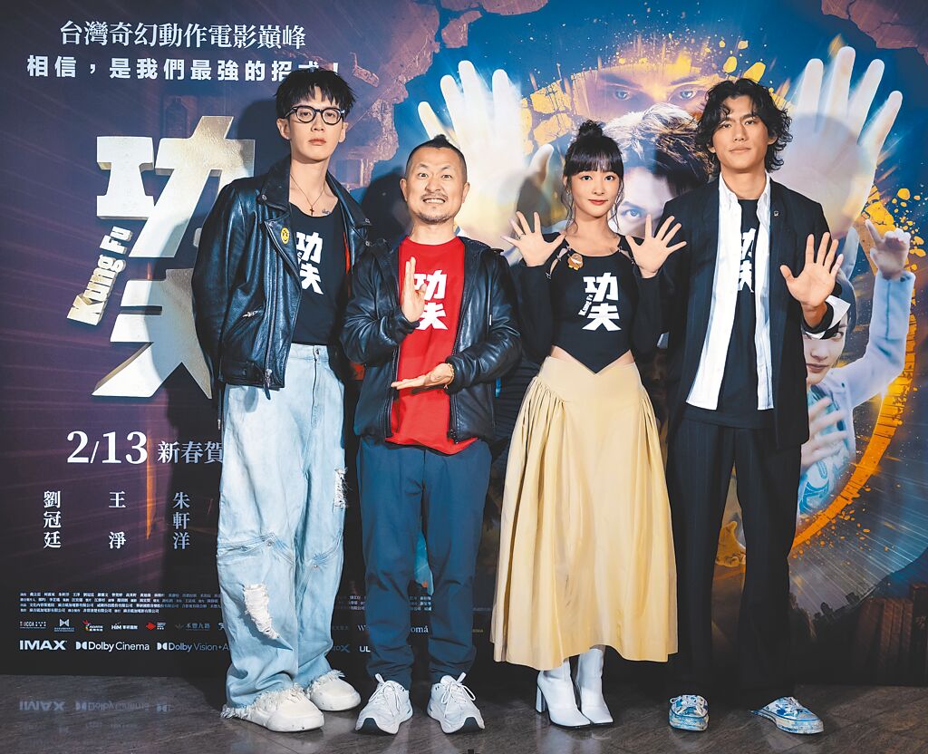 電影《功夫》22日舉辦盛大試片,演員柯震東(左起)、導演九把刀、演員王淨、朱軒洋