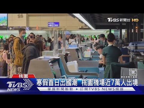 寒假第一天,桃園機場一早便出現黑壓壓的人潮,民眾紛紛攜家帶眷準備出國度假。清晨