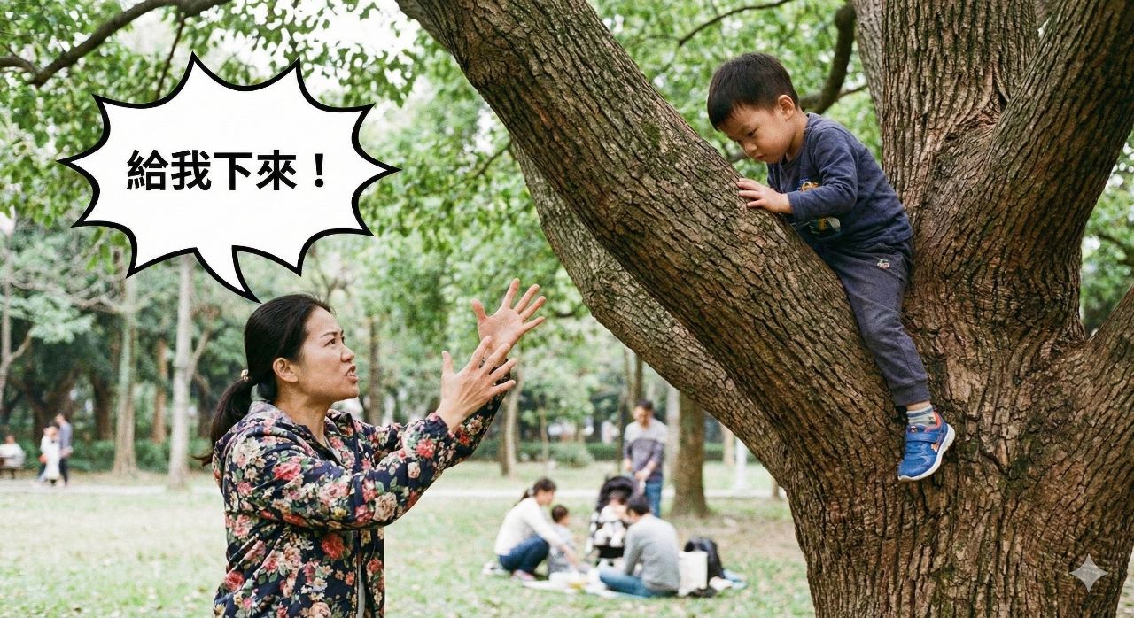 台灣人要是看小孩在爬,馬上叫他下來