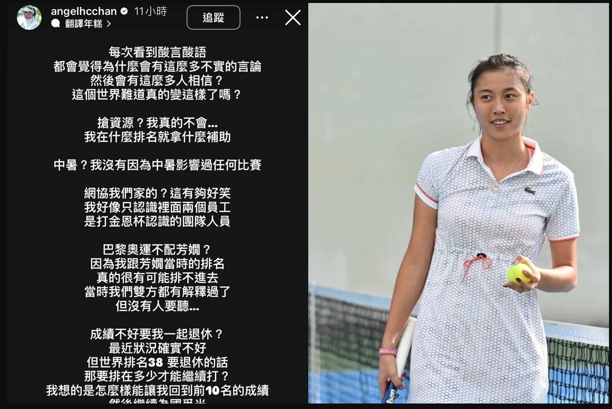 上說她「搶資源」、「2017世大運中暑退賽為了參加美網」、「巴黎奧運選姊姊作搭檔,