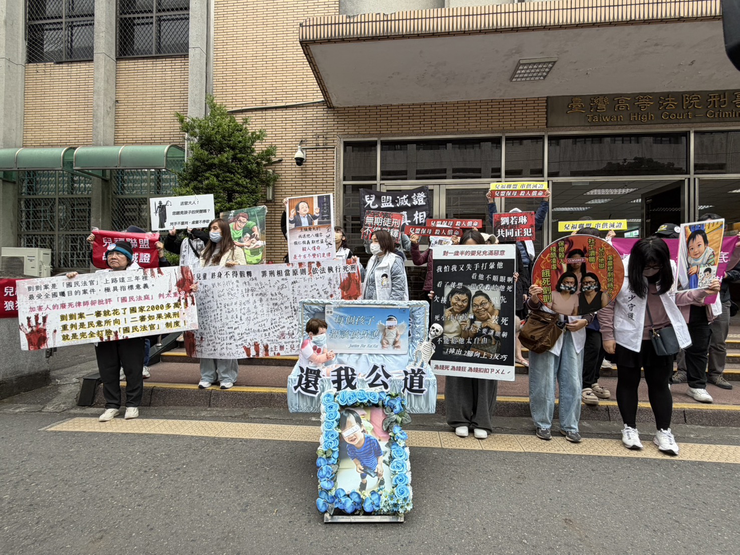 刑不得假釋、還剴剴一個公道」,「重判兒福保母、殺人償命、下架兒福聯盟」判決結果