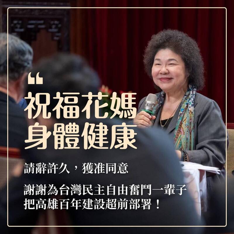 陳菊請辭,子弟兵邱俊憲衷心希望花媽身體健康。(記者王榮祥翻攝臉書)