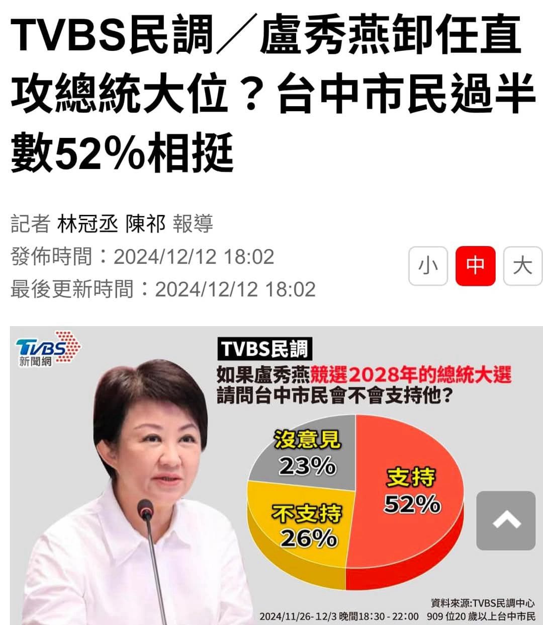 只信tvbs民調 最低扁10% 馬13% 蔡15%