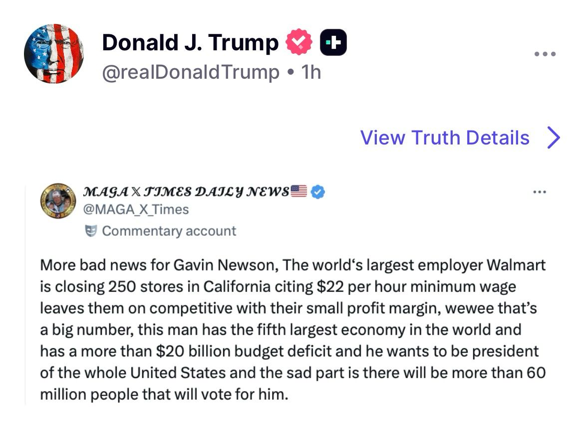 作者 bb10181128 (bb)標題 [問卦] 川普轉載Walmart加州關250家店訊息時間 Thu Jan 29 13:02:54 2026