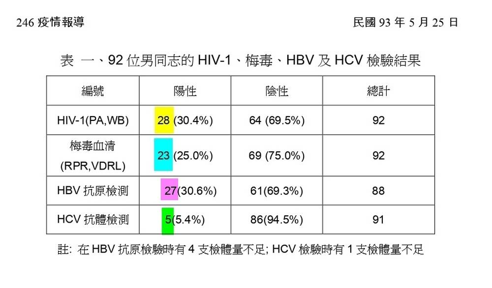 他命等毒品[1]。衛生單位透過血液檢測,檢驗了92位參與派對的成員,其中28人檢測出