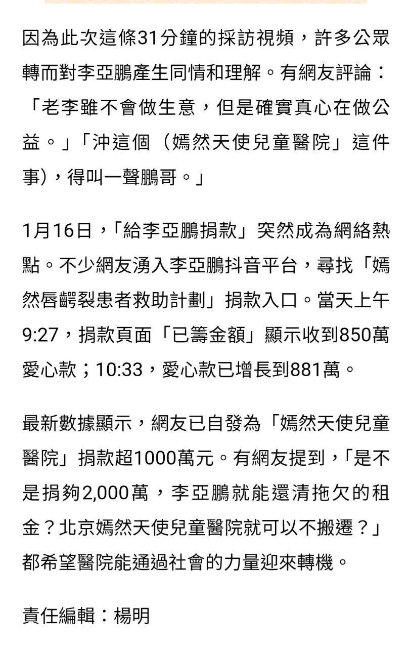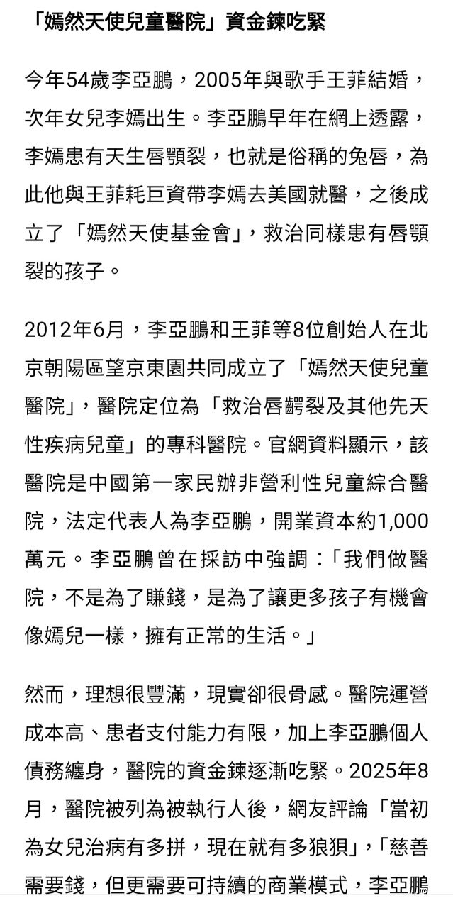 作者 YHOTV4096 (常遇春)標題 [問卦] 中國演員李亞鵬真的是唇顎裂患者的大善人時間 Fri Jan 30 23:18:19 2026