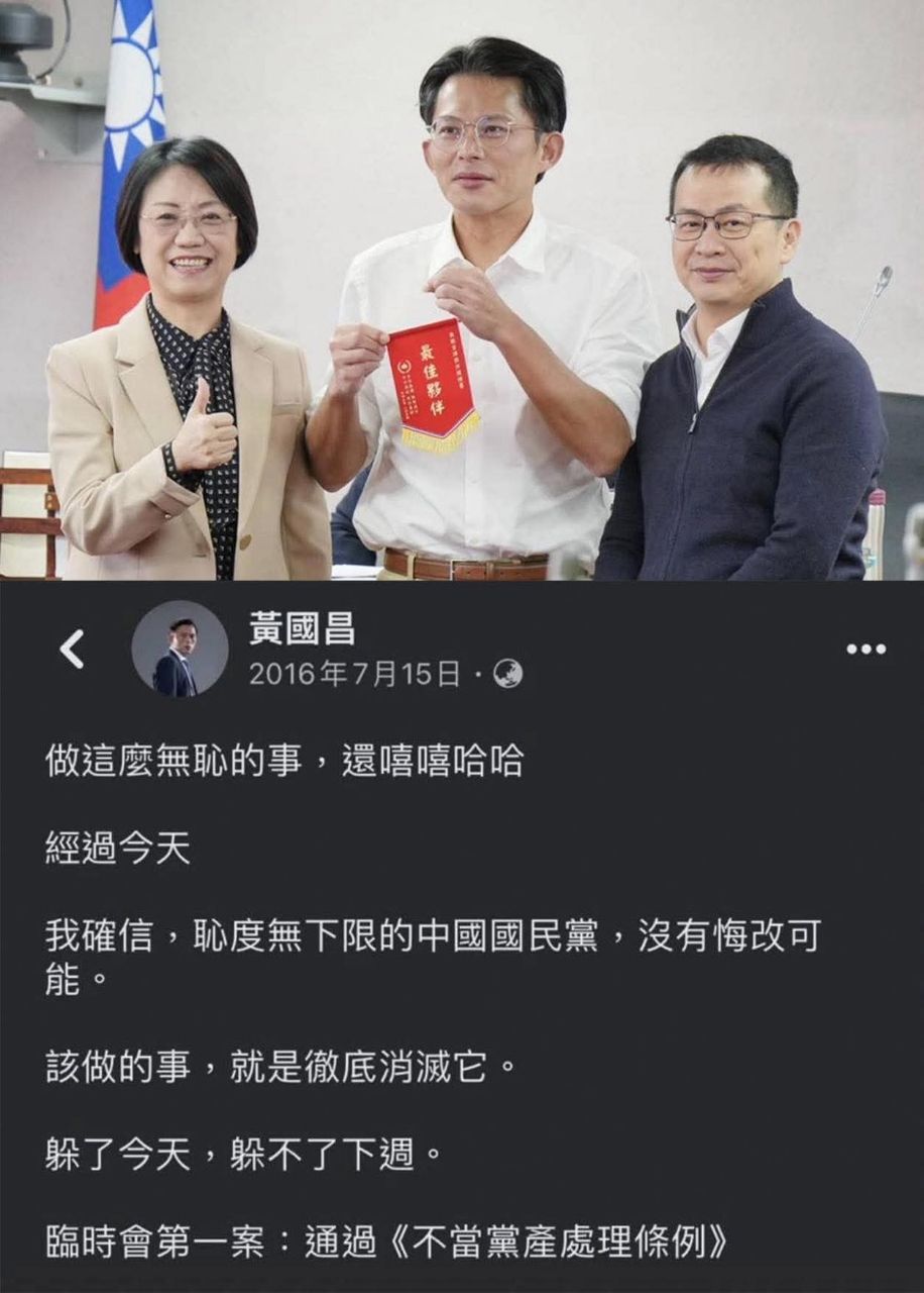公室打砲之後然後才打。」並PO出一張民眾黨主席黃國昌過去宣傳反紅媒遊行的照片,暗諷
