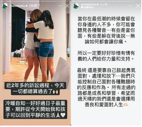 Melody在和前夫的離婚訴訟結束後,感性發文「用善良與愛面對人生」。(翻攝自