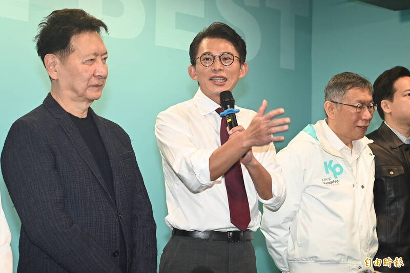 並批評「綠媒又在編故事」,站在一旁的柯文哲保持微笑未多說話。