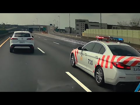 到國道紅斑馬警車也加入鳴笛、閃燈並按喇叭示警後,該名駕駛才意會到狀況,隨即打方