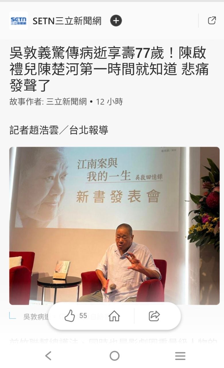 作者 rpmi1640 (灰虫想阿呆)標題 [新聞] 吳敦義驚傳病逝享壽77歲!陳啟禮兒陳楚河時間 Thu Feb 5 08:53:09 2026