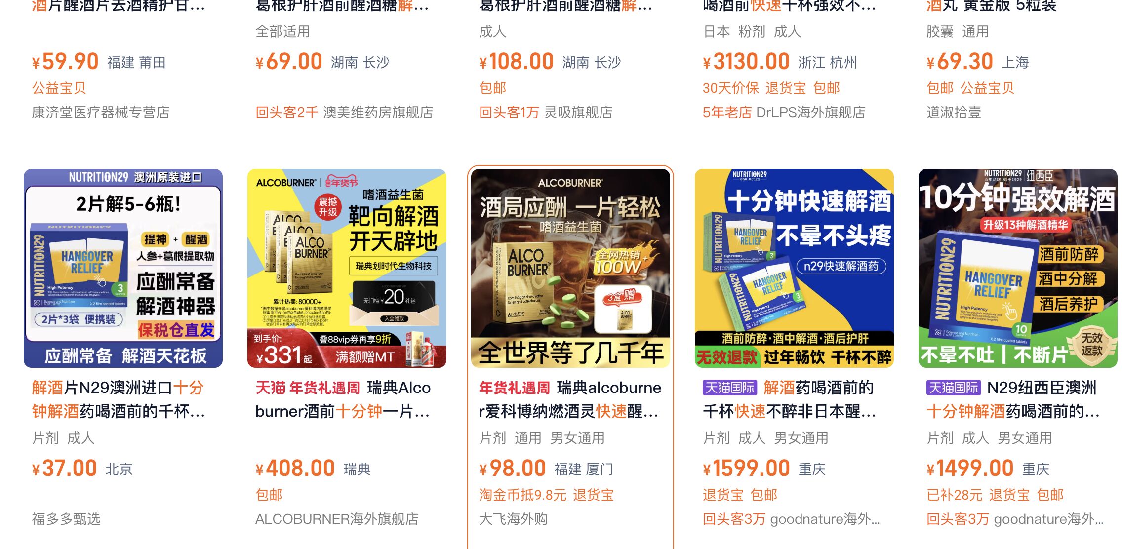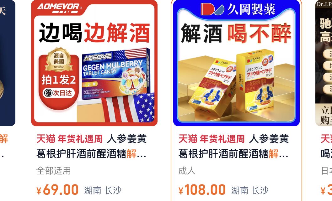 ▲大陸某些品牌「解酒神器」涉廣告誇張不實。(示意圖/翻攝淘寶,下同)