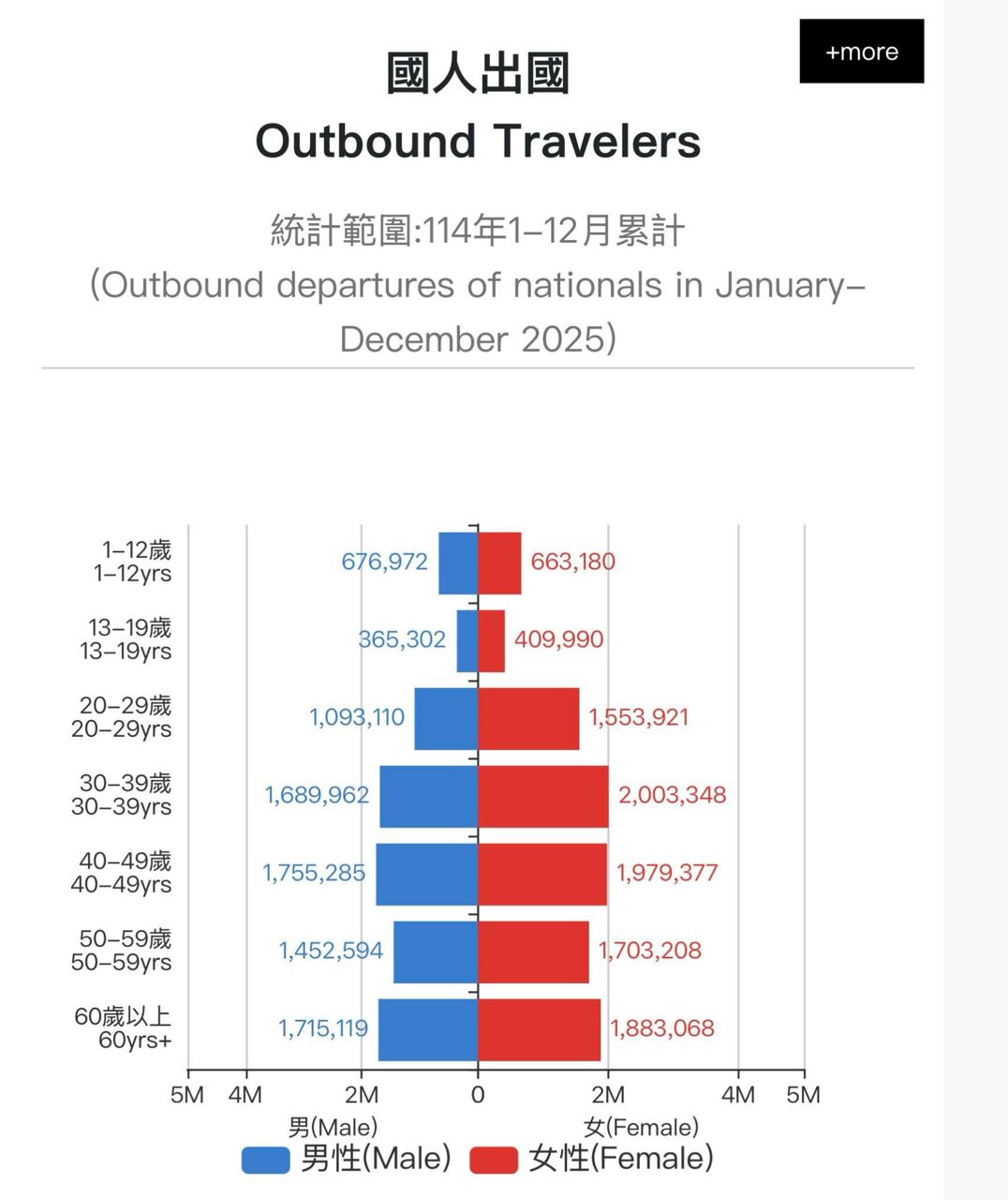 關於臺灣人個年齡層出國的比較圖