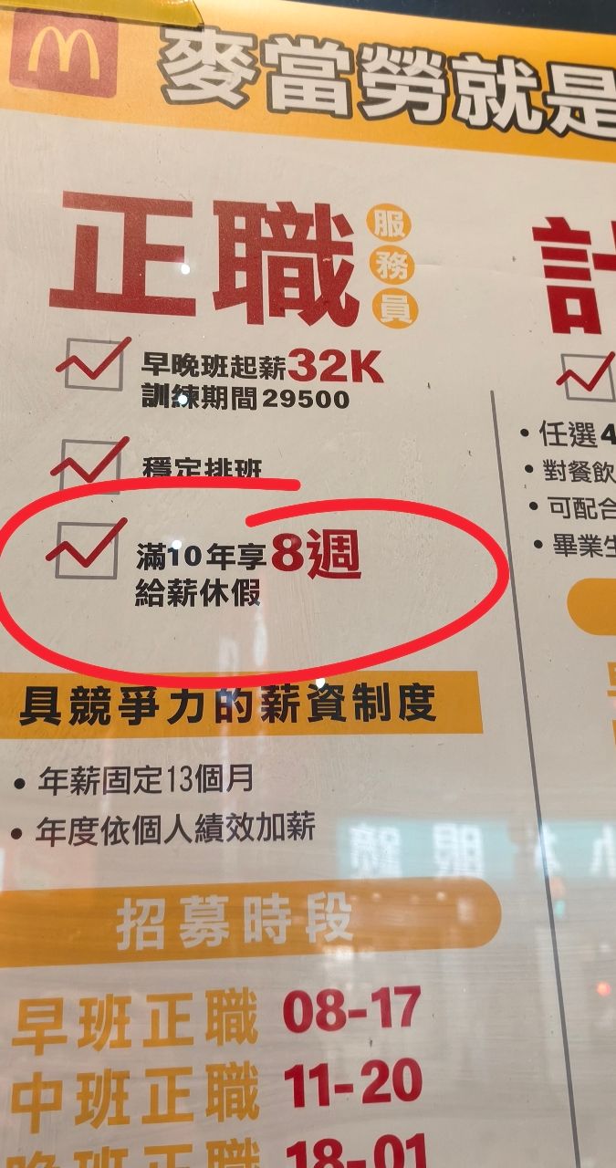 [問卦] 麥當勞工作10年,給8週有薪假!?
