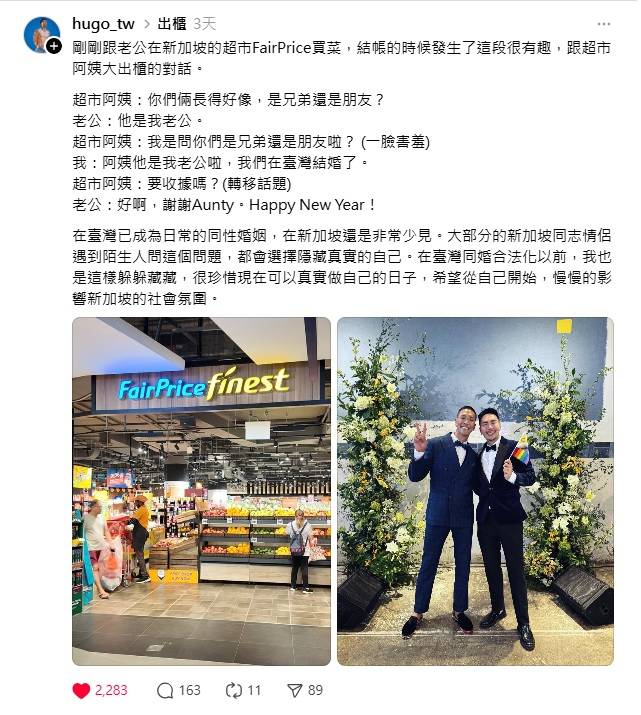 台男直接回:他是我老公 我們在台灣結婚了