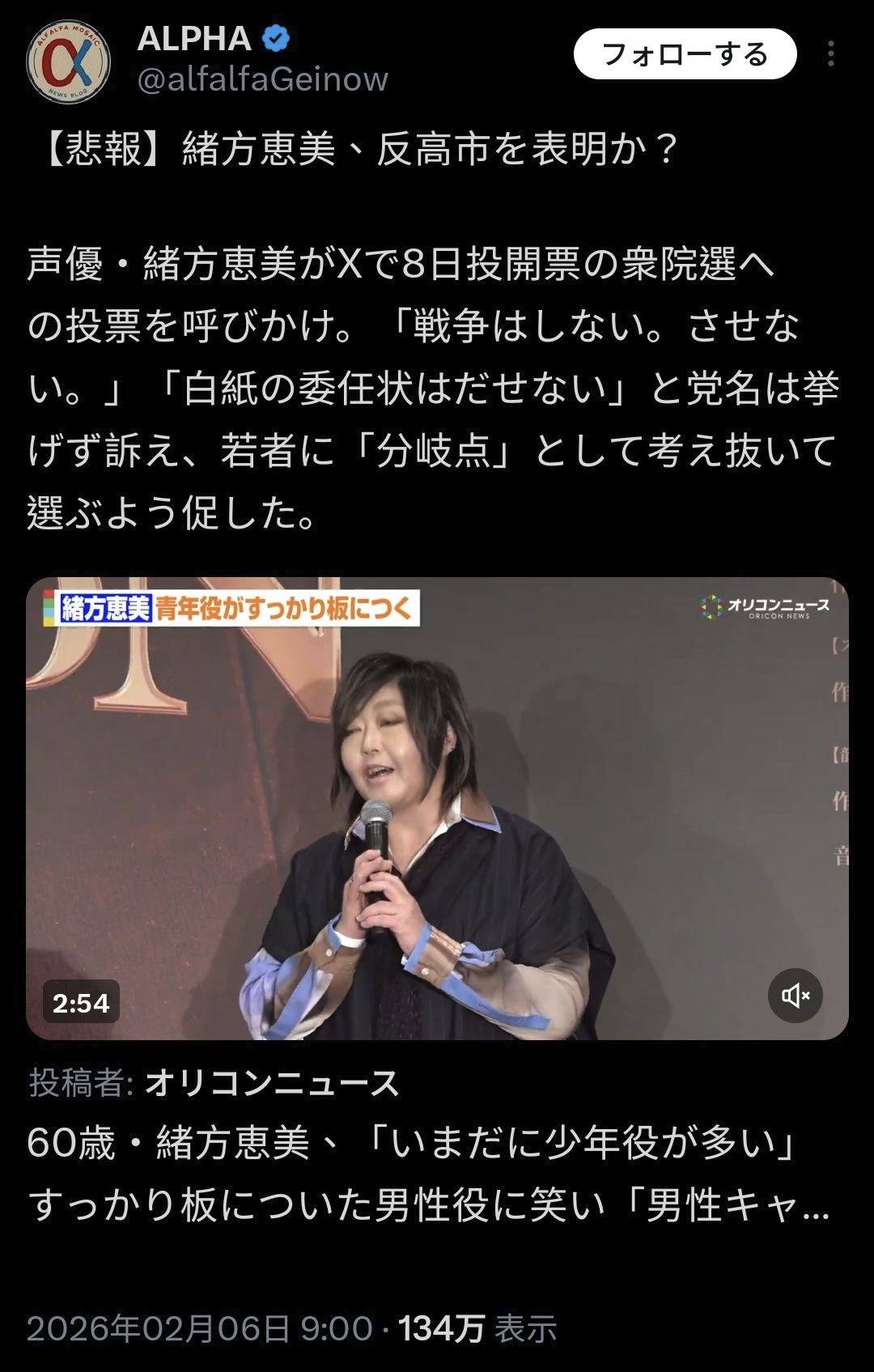 [問卦] 緒方惠美(碇真嗣) 竟然是反高市早苗喔?